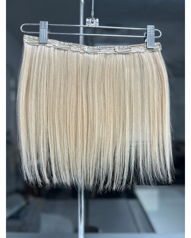 Descripción del método: Nuestra versátil solución capilar consiste en extensiones sujetas a una pequeña pinza metálica que se fija al cabello. Una solución rápida, sencilla y temporal que puedes hacer tú misma para lograr un cabello más largo y abundante sin fijación permanente, dolor ni daño a tu cabello natural. Es ideal para quienes buscan peinados hermosos para fiestas, eventos, etc. ¡Puedes colocarlas sin dolor y son fáciles de poner y quitar cuando quieras! Los estilistas también pueden retirar las pinzas e instalarlas como extensiones de trama. ¡Siente la libertad de realzar tu estilo cuando quieras! Aplicación sin calor.