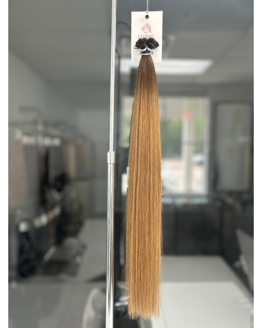Descripción del método: Las extensiones de cabello con punta F son pequeños mechones de cabello, con una forma plana cuadrada de queratina K italiana. Cada mechón de cabello se aplica a su cabello natural utilizando una máquina de fusión fría o caliente. Nuestras puntas ya vienen con la cantidad adecuada de pegamento para que puedas aplicarlas directamente sin ningún problema; el medio se puede cortar si quieres incluso una pequeña punta.
