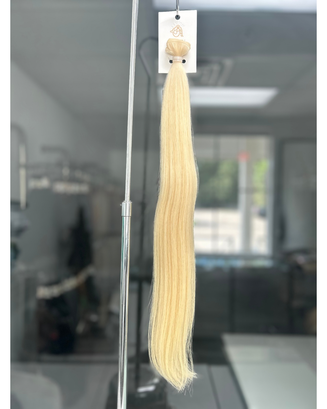 Descripción del método: Nuestro Slim Weft es la versión mejorada más nueva de trama a máquina que imita las extensiones atadas a mano pero con menos pérdida de cabello ya que está hecha con una máquina y permite cortar en cualquier lugar. Se elaboran tejiendo mechones de cabello en una base que se puede unir a tu cabello natural. Trama súper delgada, plana y liviana, sin pello de retorno en la trama (bigote) que brinda un aspecto más natural y es perfecto para clientas con coro cabelludo mas sensible. Recomendado especialmente para personas con cuero cabelludo sensible o cabello fino.. Aplicación sin calor.