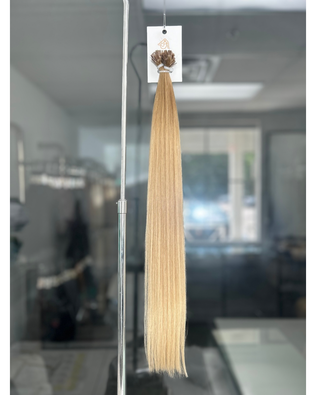 Descrição do método: Extensões de cabelo com ponta F são pequenos feixes de cabelo - conhecidos como fios - com formato quadrado plano de queratina italiana K. Cada mecha de cabelo é aplicada ao cabelo natural usando uma máquina de fusão quente ou fria. Nossas dicas já vêm com a quantidade certa de cola para que você possa aplicá-las diretamente e sem complicações; o meio pode ser cortado se você quiser até mesmo uma pequena ponta.