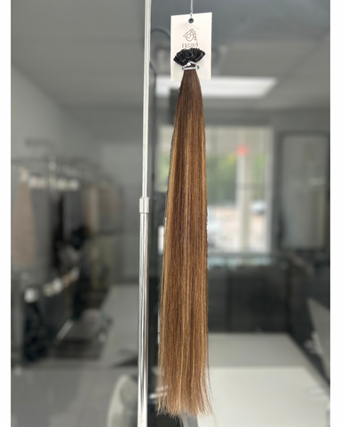 Descrição do método: Extensões de cabelo com ponta F são pequenos feixes de cabelo - conhecidos como fios - com formato quadrado plano de queratina italiana K. Cada mecha de cabelo é aplicada ao cabelo natural usando uma máquina de fusão quente ou fria. Nossas dicas já vêm com a quantidade certa de cola para que você possa aplicá-las diretamente e sem complicações; o meio pode ser cortado se você quiser até mesmo uma pequena ponta.