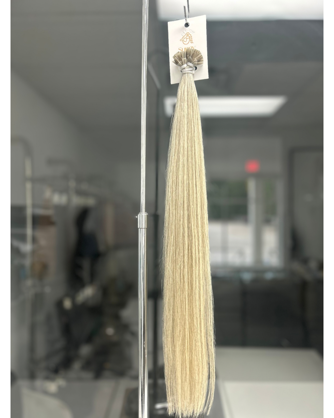 Descrição do método: Extensões de cabelo com ponta F são pequenos feixes de cabelo - conhecidos como fios - com formato quadrado plano de queratina italiana K. Cada mecha de cabelo é aplicada ao cabelo natural usando uma máquina de fusão quente ou fria. Nossas dicas já vêm com a quantidade certa de cola para que você possa aplicá-las diretamente e sem complicações; o meio pode ser cortado se você quiser até mesmo uma pequena ponta.