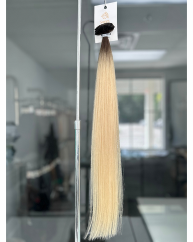 Descrição do método: Nossa Trama Regular (Trama de Máquina) é perfeita para quem busca cabelos grossos e cheios de densidade. Eles são feitos pegando fios de nosso cabelo humano e entrelaçando-os em uma base que pode ser fixada ao seu cabelo natural. Eles são feitos com linha forte e durável e podem durar mais do que as extensões tradicionais amarradas à mão. Eles também podem ser cortados em qualquer lugar sem desfiar e podem ser usados várias vezes. Aplicação Sem Calor!